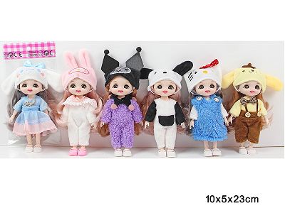 6寸13关节实身3D真眼时尚萝莉娃娃单只戴头饰6款混