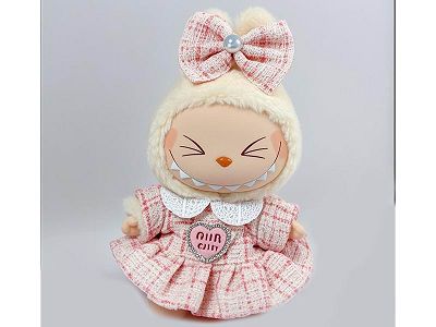 一二代拉布布labubu坐坐派对挂件19cm娃衣搪胶公仔甜美香香风裙子