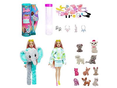 高档惊喜11.5寸12关节实身大象萌宠芭比带1套动物毛绒时装衣服。带发夹,手提包,鞋子。项链4款配件。另外带一只随机小动物有2套衣服