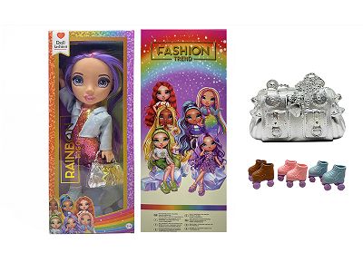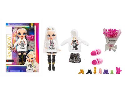 高端饰品系列 16寸搪胶带灯光音乐主题曲Rainbow High惊喜彩虹高中带耳环,戒指,手提包。魔术棒 5件套