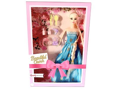 11寸实身活手长发芭比娃娃+饰品