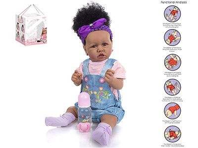56cm重生娃娃高仿真婴儿娃娃(假发套)带奶瓶,磁性奶嘴,尿布,出生卡