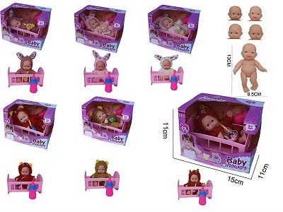 5寸搪胶表情娃娃+睡床(6款混装)