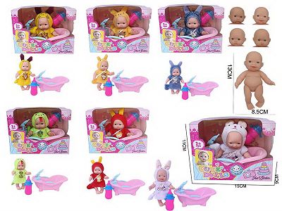 5寸搪胶表情娃娃+浴池(6款混装)