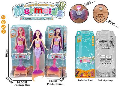 13.5寸实身18CM长发灯光+音乐美人鱼芭比(包电AG13*3/2色混装)