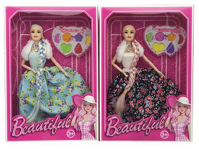 高档主题11.5寸9关节实身长发公主带化妆盒 2款混装