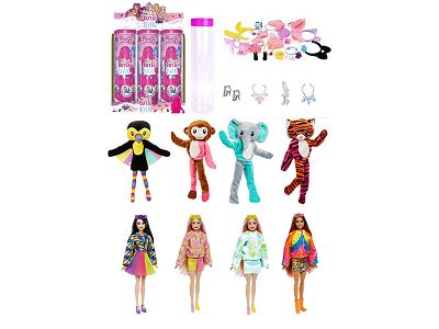 高档惊喜11.5寸12关节实身萌宠芭比带1套动物毛绒时装衣服。带发夹,手提包,鞋子。项链4款配件。有2套衣服 4款6PC混装