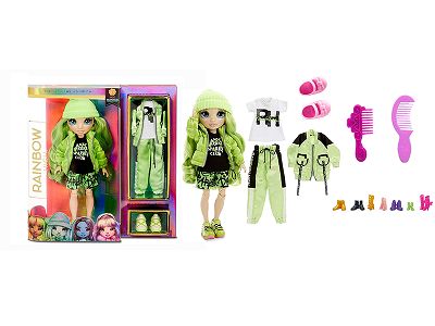 高端时尚主题 1比1 10寸12关节实身真玻璃眼珠Rainbow high惊喜彩虹高中宝宝带大梳。2双鞋子带高端三件套装