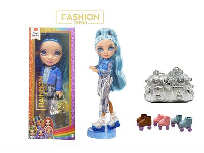 高端冬天系列 16寸搪胶带灯光音乐主题曲Rainbow high惊喜彩虹高中带溜冰鞋、彩虹大手提包
