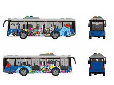 产品名称: 1:16涂鸦单层巴士惯性,灯光,声音,开门
