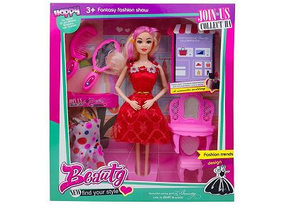 高档11.5寸实身9关节时装芭比带梳妆台套装大梳子镜子配件吊裙