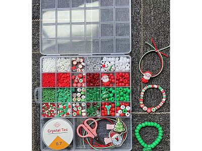 女孩饰品玩具-圣诞DIY串珠26格/小米珠/软陶/皮筋/剪刀/发夹