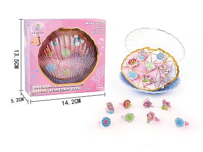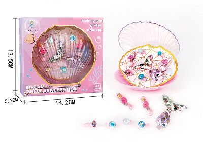 女孩饰品-贝壳饰品盒海洋美人鱼戒指,公主发夹/手链