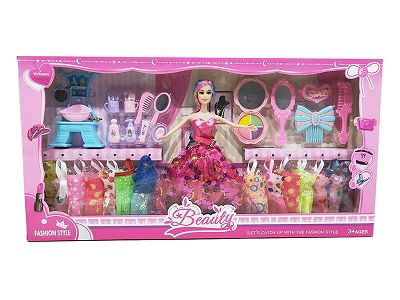 高档11.5寸实身活手婚纱芭比带梳妆台洗漱吸塑配件和化妆梳子镜子吸塑配件吊裙