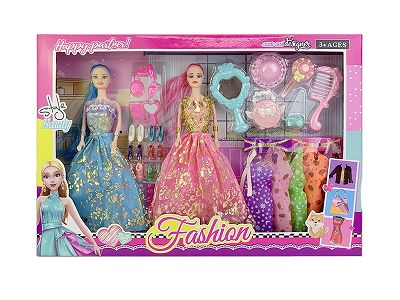 高档11.5寸实身活手婚纱芭比2只装带鞋子吸塑盒大梳子大镜子配件吸塑