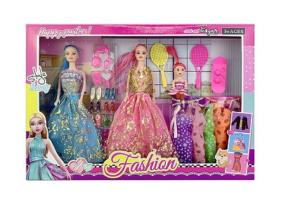 高档11.5寸实身活手婚纱芭比2只装带鞋子吸塑和网球拍和滑板3寸仔吊裙