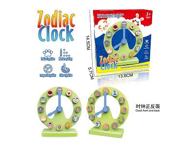 桌面游戏系列生肖小时钟可爱卡通多功能趣味好玩认知逻辑思维闹钟玩具