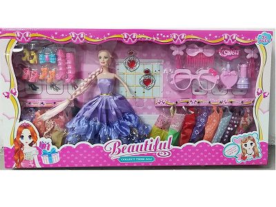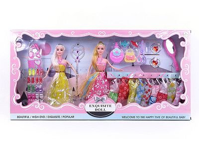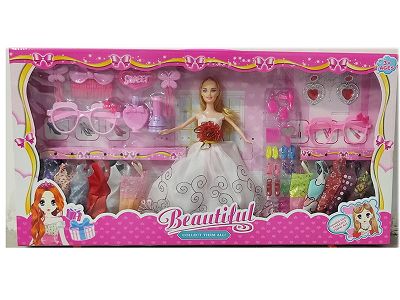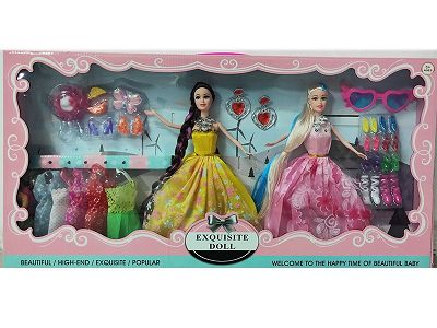 高档大盒11.5寸实身活手婚纱裙子芭比双人装带吊衣和梳妆配件吸塑和鞋子眼镜配件