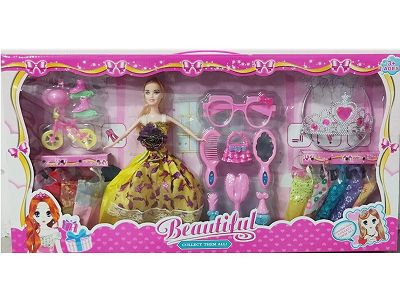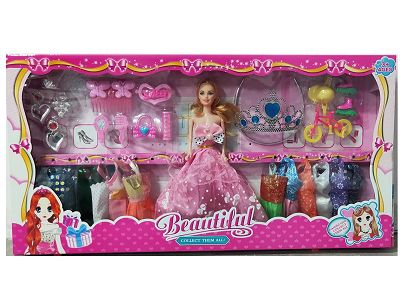 高档大盒11.5寸实身活手婚纱芭比带大项链配件和单车配件吸塑吊裙