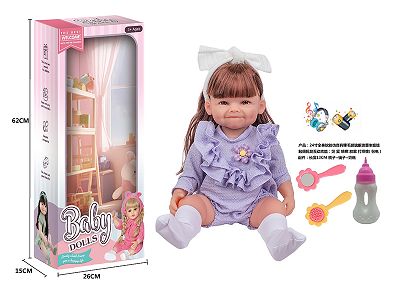 24寸全身软胶仿真有睫毛玻璃眼珠重生娃娃带梳子镜子奶瓶(触摸摇晃互动功能:哭 笑 咳嗽 放屁 打喷嚏)