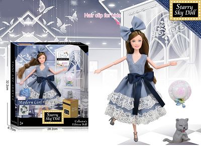 11.5寸实身9关节身时装裙子芭比带大梳镜子和帽子2款混装