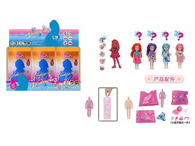 5寸实身缤纷变色凯莉主题。带衣服带5款不同主题配件带4款6PCS混装
