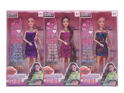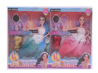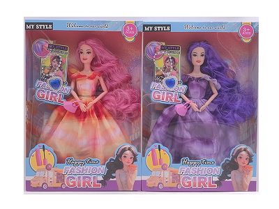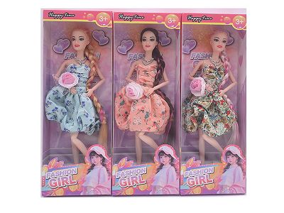 11.5寸十一关节实身长辫时尚芭比 带项链+手棒花 3款混