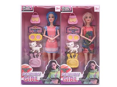 11.5寸9关节实身时尚芭比 带包包+宠物猫吸塑 2款混