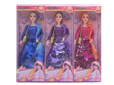 11.5寸9关节实身金丝长辫时尚芭比 带单肩包 3款混