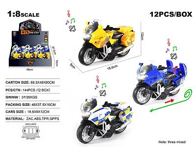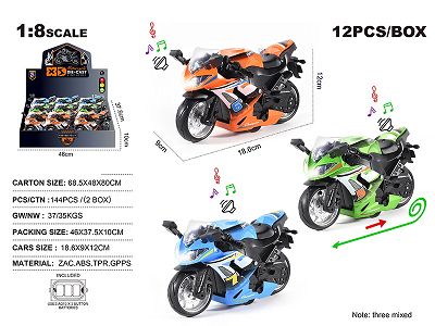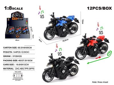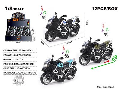 1:8合金宝马水鸟回力摩托街车 12只/展示盒