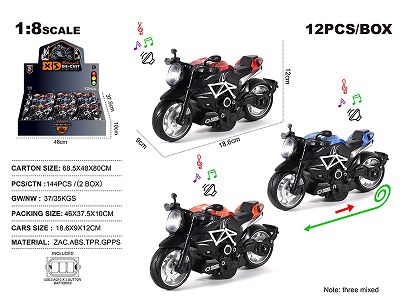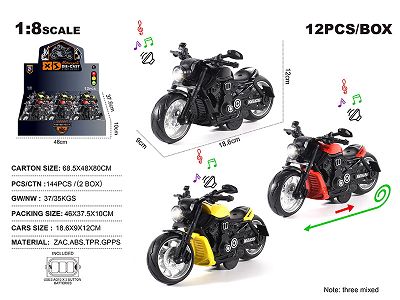 1:8合金古斯塔回力摩托街车 12只/展示盒