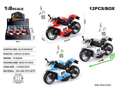1:8合金杜卡迪回力摩托赛车 12只/展示盒