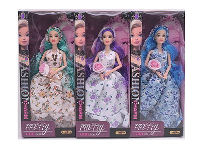 11.5寸9关节实身长发时尚芭比 带头饰+手棒花 3款混