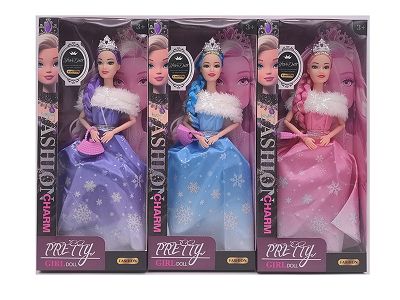 11.5寸9关节实身金丝长辫时尚芭比 带皇冠+手提包 3款混