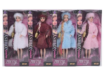 11.5寸9关节实身长辫时尚芭比 带帽子+单肩包 4款混