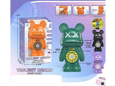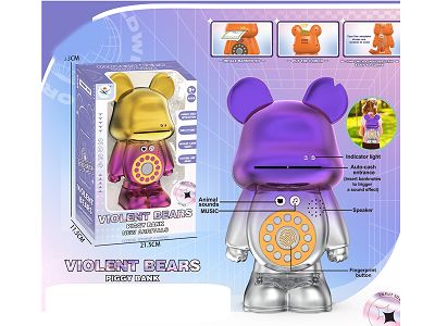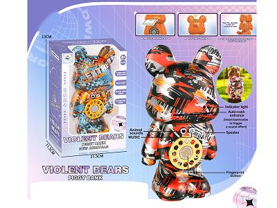 背包式UV喷镀渐变暴力熊存钱罐,带灯光音乐(2色混装)
