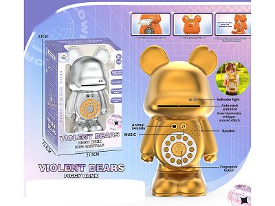 背包式电镀暴力熊存钱罐,带灯光音乐(金、银2色混装)
