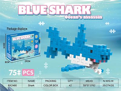 非乐高式吹塑PE积木鲨鱼(Shark)75PCS 益智积木拼装积木大颗粒积木拼插积木动物积木