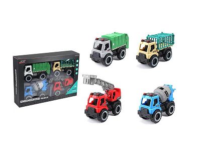 滑行城市卡车四只装(滑行车城市环卫车云梯车运输车水泥车仿真车模型车)