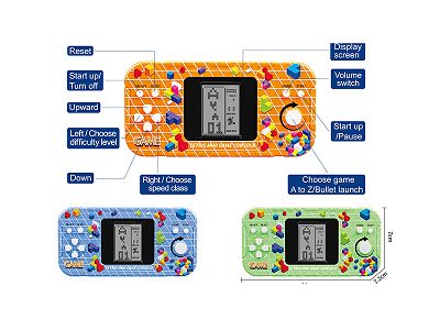 俄罗斯方块游戏机 益智、迷你、 小手柄、 掌上游戏机 儿童益智解压电子经典怀旧便捷式童年玩具 (白 兰 灰三色混装)