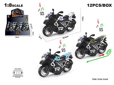 1:8压铸锌合金宝马水鸟回力摩托街车12只/展示盒