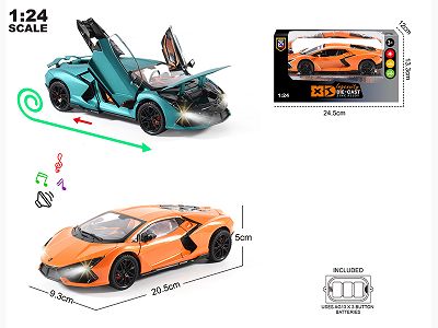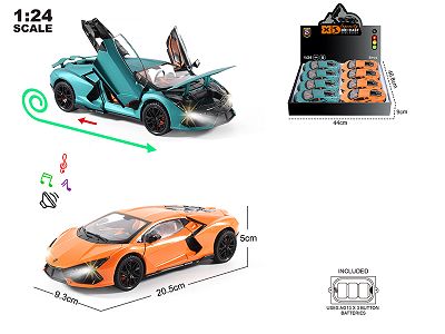 英文1:24压铸锌合金灯光音效兰博基尼新大牛车模