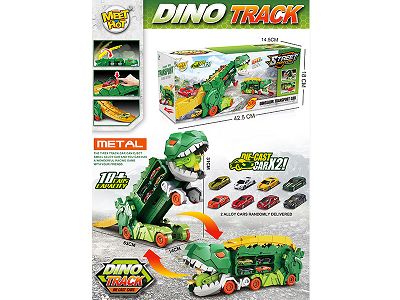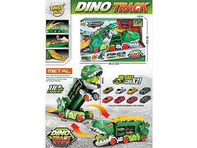 恐龙收纳变形竞技吞食弹射轨道货柜车配2只合金车