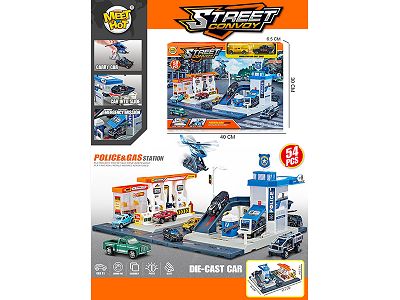 城市加油站警察局组合配2只合金车(停车场)