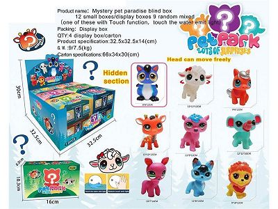 戏水-神秘宠物乐园盲盒(9款式)(12小盒/盒)(6款式)(18只/桶)(浴室戏水搪胶动物 卡通Q版动物摆件)