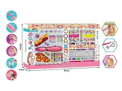 女孩过家家多功能编发穿珠器+发夹+宝石贴+美甲贴+12星座纹身贴+DIY编绳串珠套装