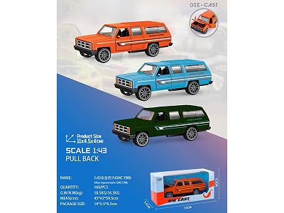 1:43 Scale Alloy Die Cast Pull Back Model Car Toys(3 Colors)