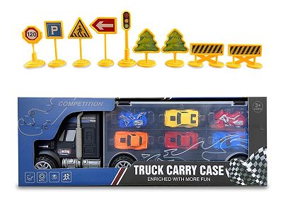 Handle Friction Trailer Car Toys With Vehicle Set