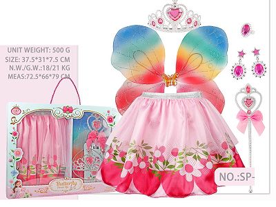 Flower Fairy Wings Skirt Crown Accessories Girls Play Home Dress Up Toys