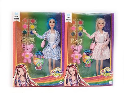 11.5寸9关节实身时尚芭比 带小熊画具吸塑 2款混